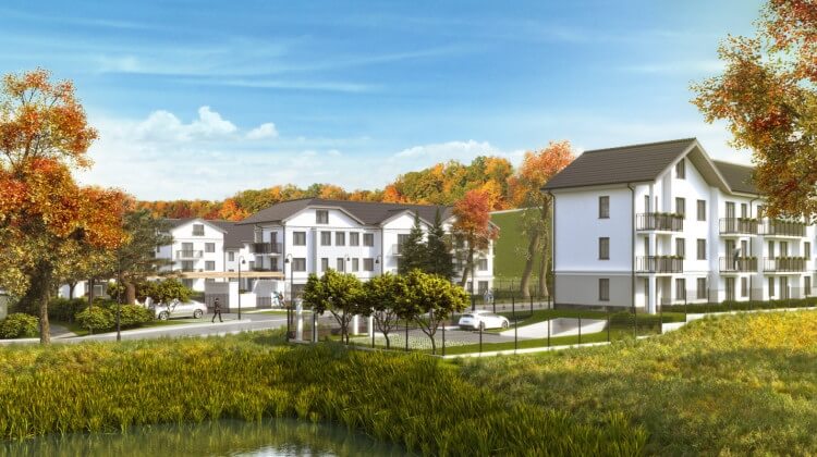 Osiedle składa się z pięciu budynków, w których łącznie znajdują się 54 mieszkania. Budynki są trzykondygnacyjne. Pod budynkami powstały hale garażowe.